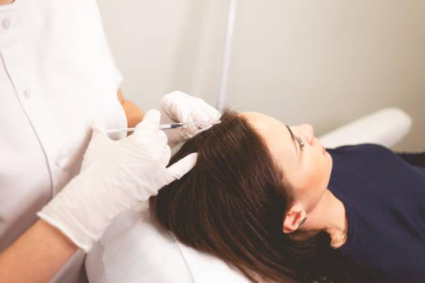 The procedure typically takes less than an hour. After preparing the platelet-rich plasma, small injections are administered into targeted areas of the scalp.